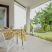 Splendida villetta a schiera disposta su due piani con giardino privato, adatta ad ospitare gruppi o famiglie fino a 5 adulti e 2 neonati. Al piano terra: zona giorno con salotto, cucina abitabile, bagno con vasca e lavatrice; al primo piano: zona notte con camera matrimoniale, camera con letto a castello e camera con un letto singolo e due lettini da neonato, bagno con doccia, terrazzo. Deliziosa area esterna verde e due posti auto davanti alla proprietà.