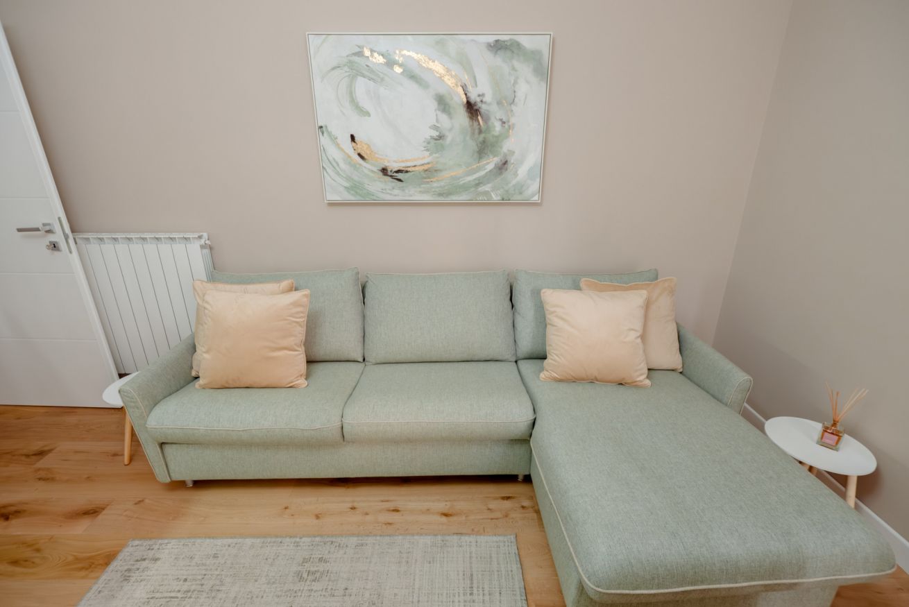 Ampio divano letto in soggiorno con un ulteriore posto letto