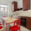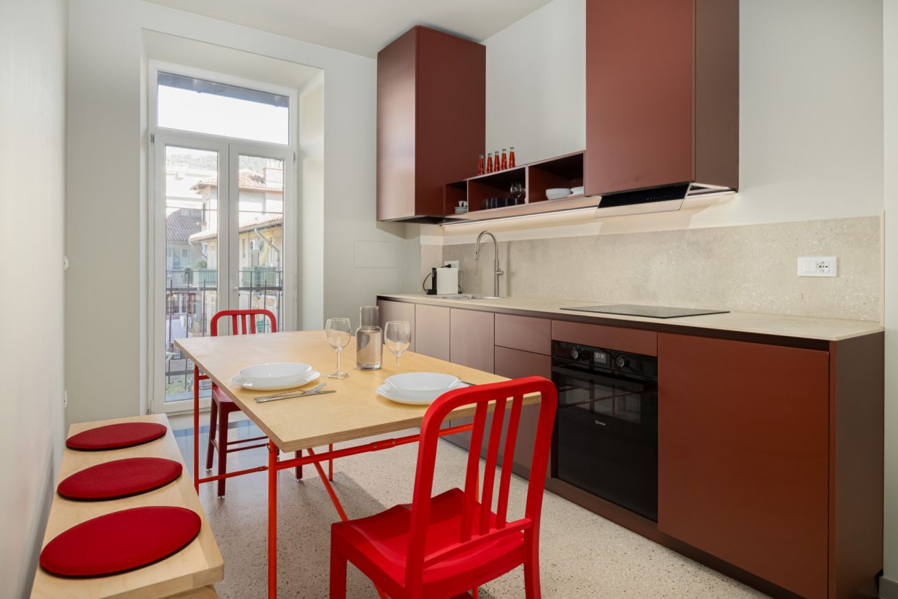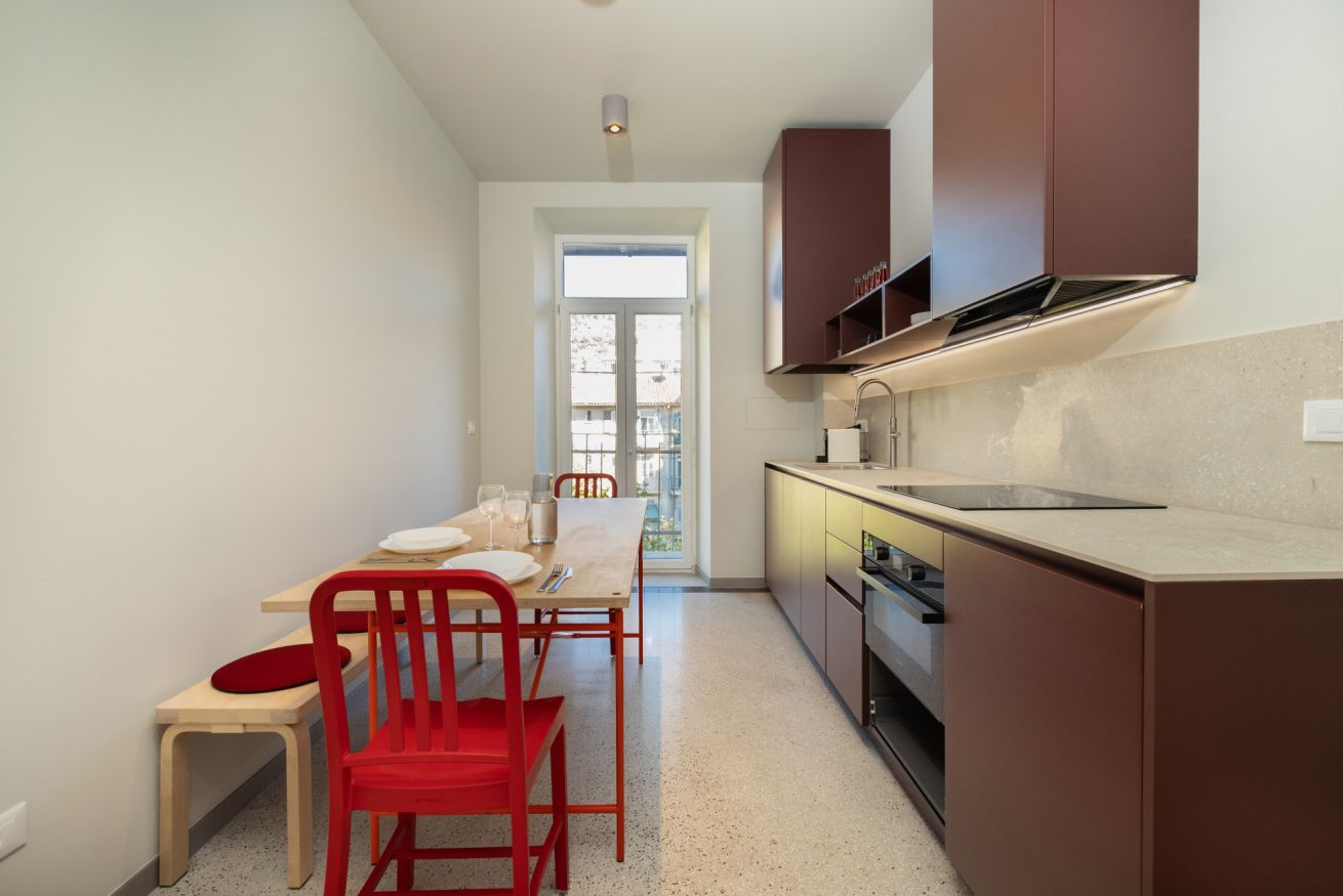 The apartment, located on the 4th floor of a building WITHOUT AN ELEVATOR, features a fully equipped kitchen with an induction cooktop, dishwasher, oven/microwaves grill and refrigerator.