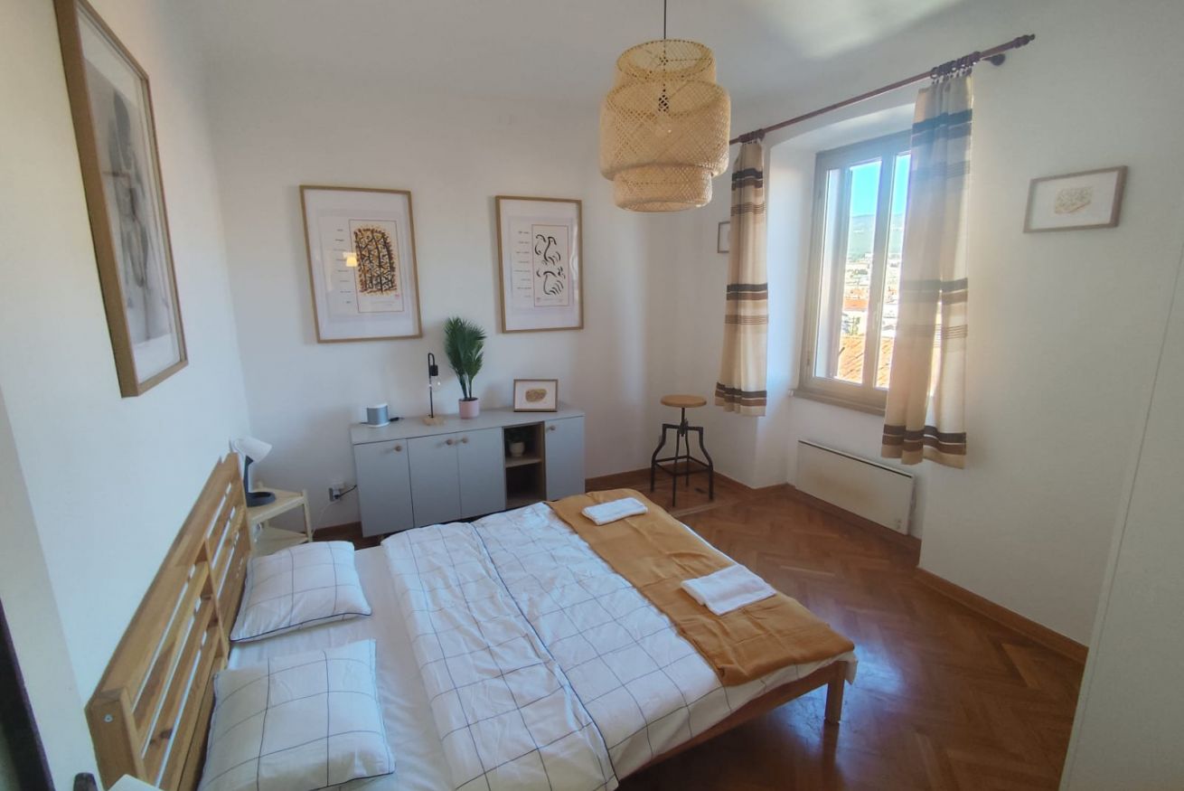L’appartamento ha un affaccio suggestivo sui tetti di Trieste, è interamente arredato, pensato per garantire comfort e praticità, perfetto per coppie o viaggiatori che cercano un punto d’appoggio accogliente durante il loro soggiorno.